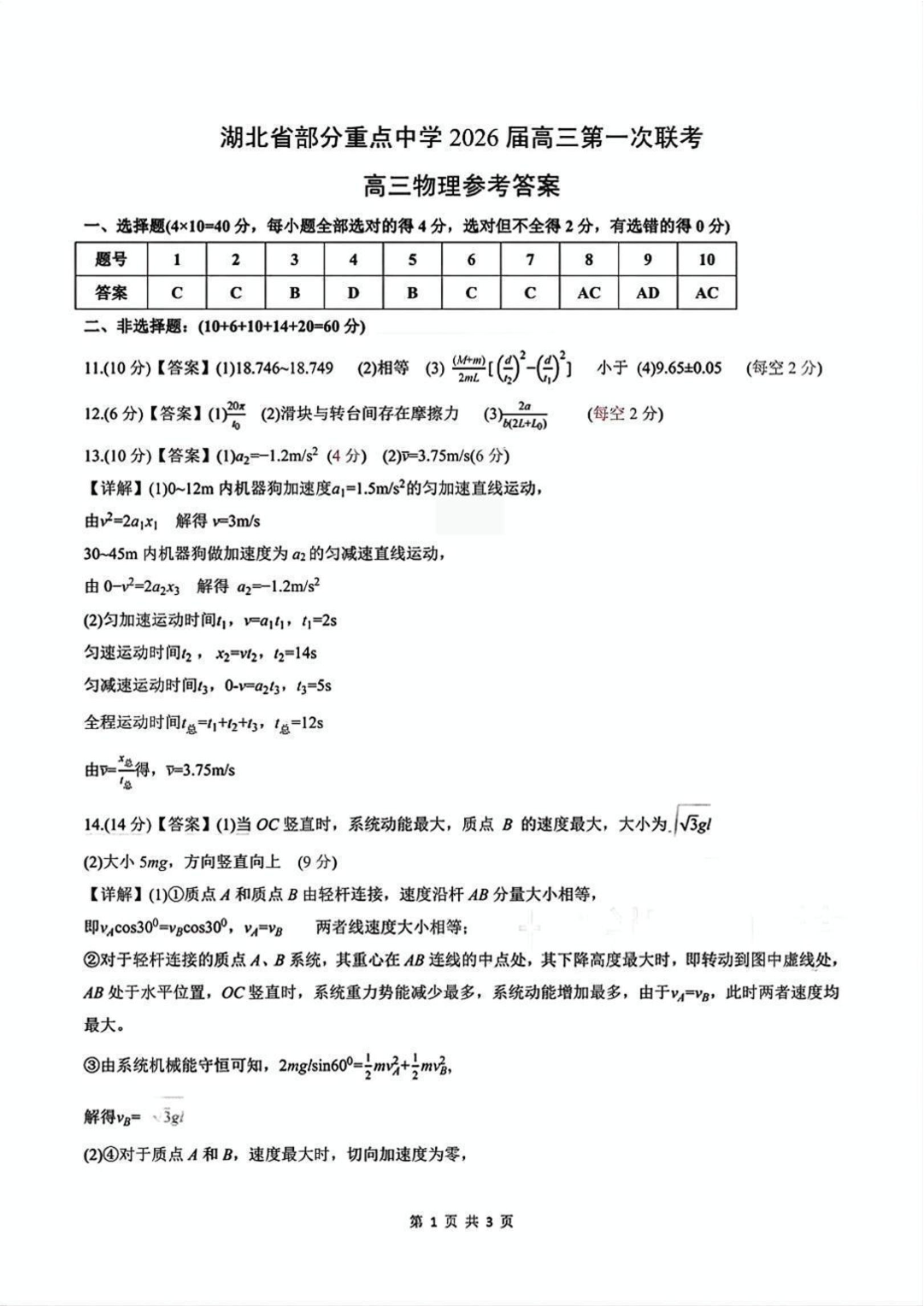湖北省武汉市部分重点中学2026届高三第一次联考 物理答案.pdf