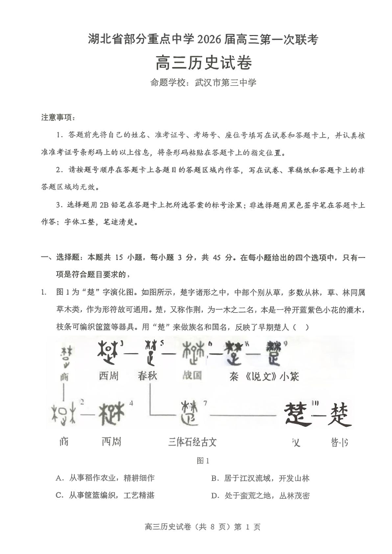 湖北省武汉市部分重点中学2026届高三第一次联考 历史.pdf