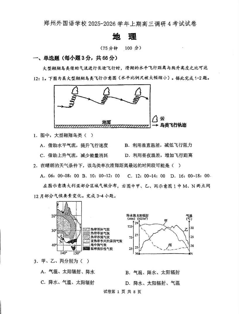 郑州外国语学校2025-2026学年上期高三调研4考试试卷 地理.pdf