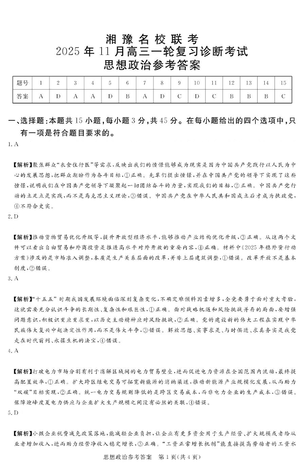 湘豫名校联考2025年11月高三一轮复习诊断考试 政治答案.pdf