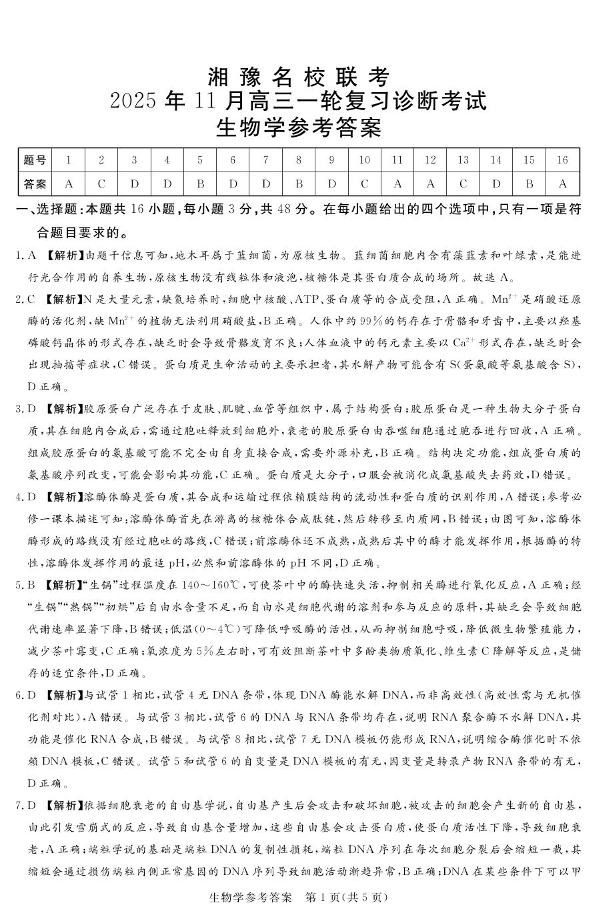 湘豫名校联考2025年11月高三一轮复习诊断考试 生物答案.pdf