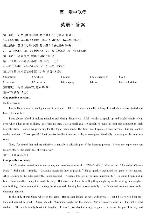 【英语答案】天一大联考·安徽省2025-2026学年高一上学期期中联考.pdf