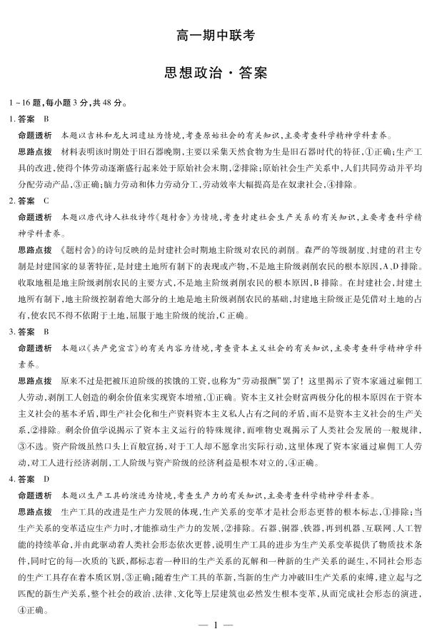 【思想政治答案】天一大联考·安徽省2025-2026学年高一上学期期中联考.pdf