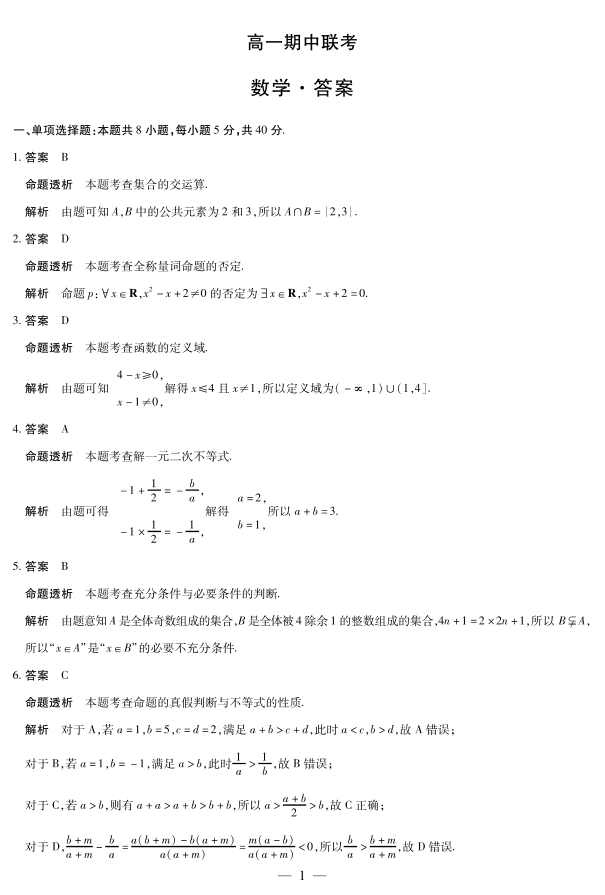 【数学答案】天一大联考·安徽省2025-2026学年高一上学期期中联考.pdf