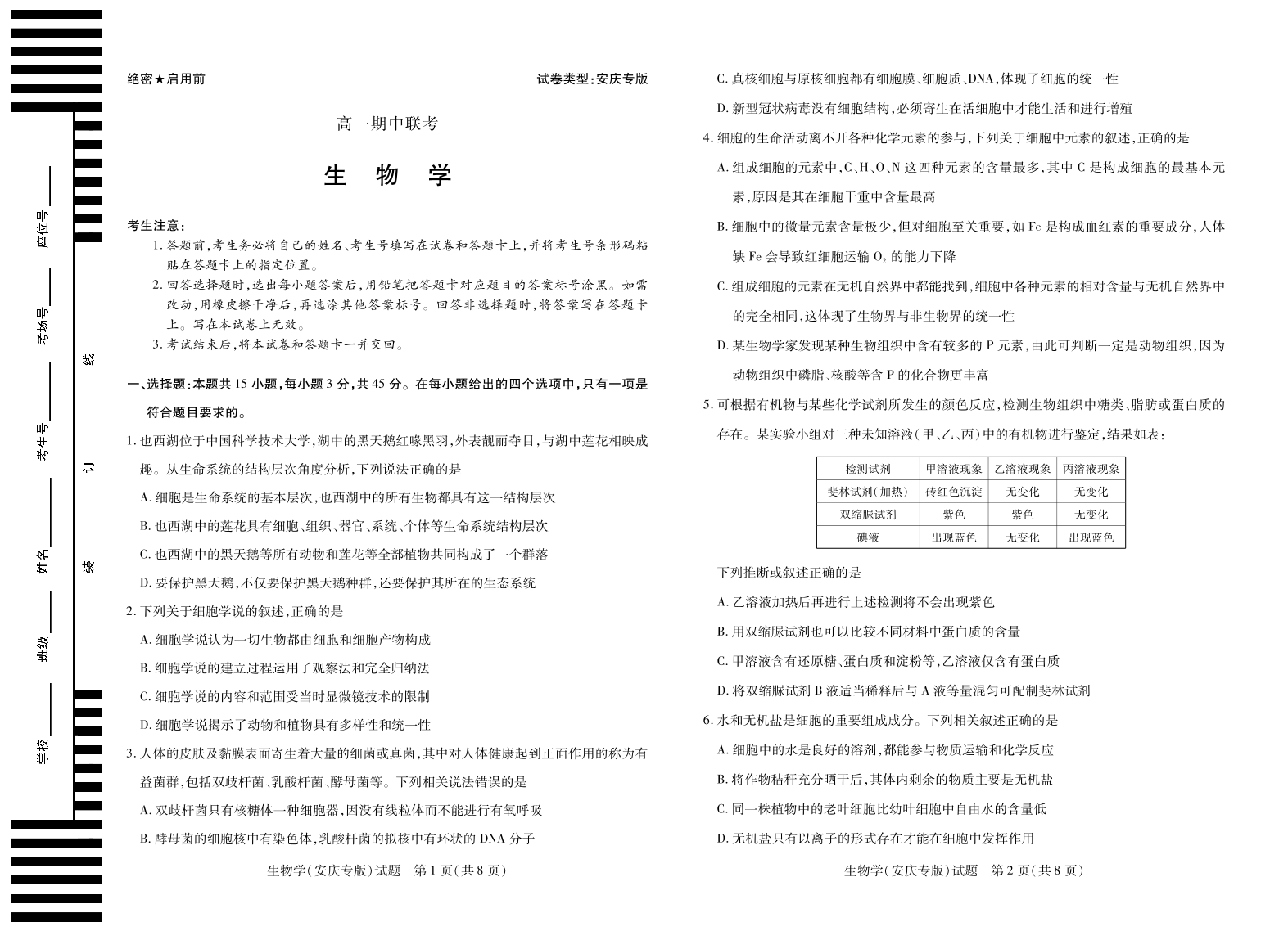 【生物学安庆专版】天一大联考·安徽省2025-2026学年高一上学期期中联考.pdf