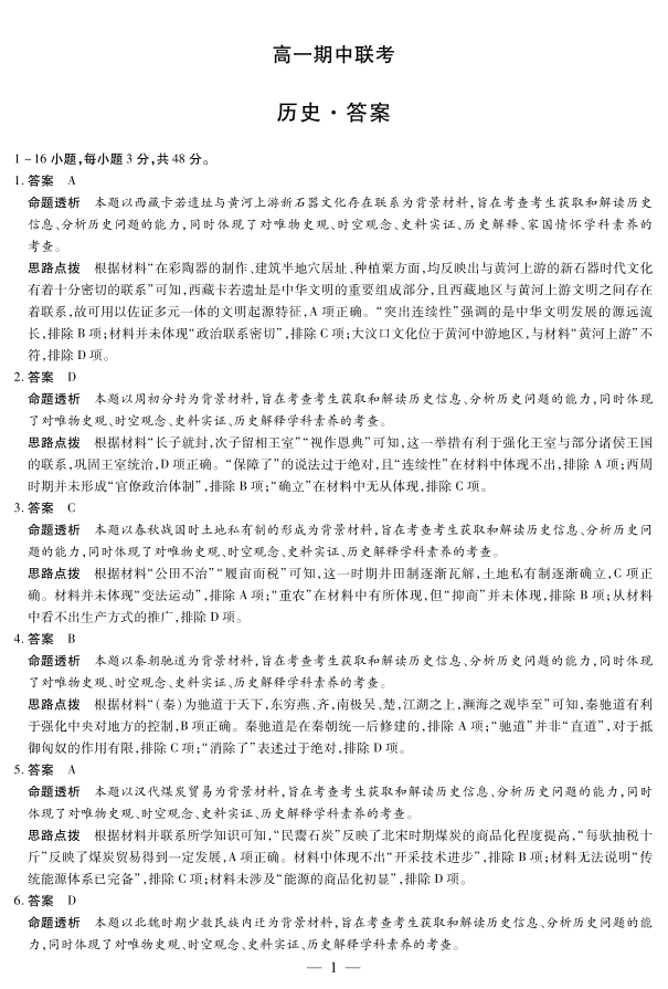 【历史答案】天一大联考·安徽省2025-2026学年高一上学期期中联考.pdf
