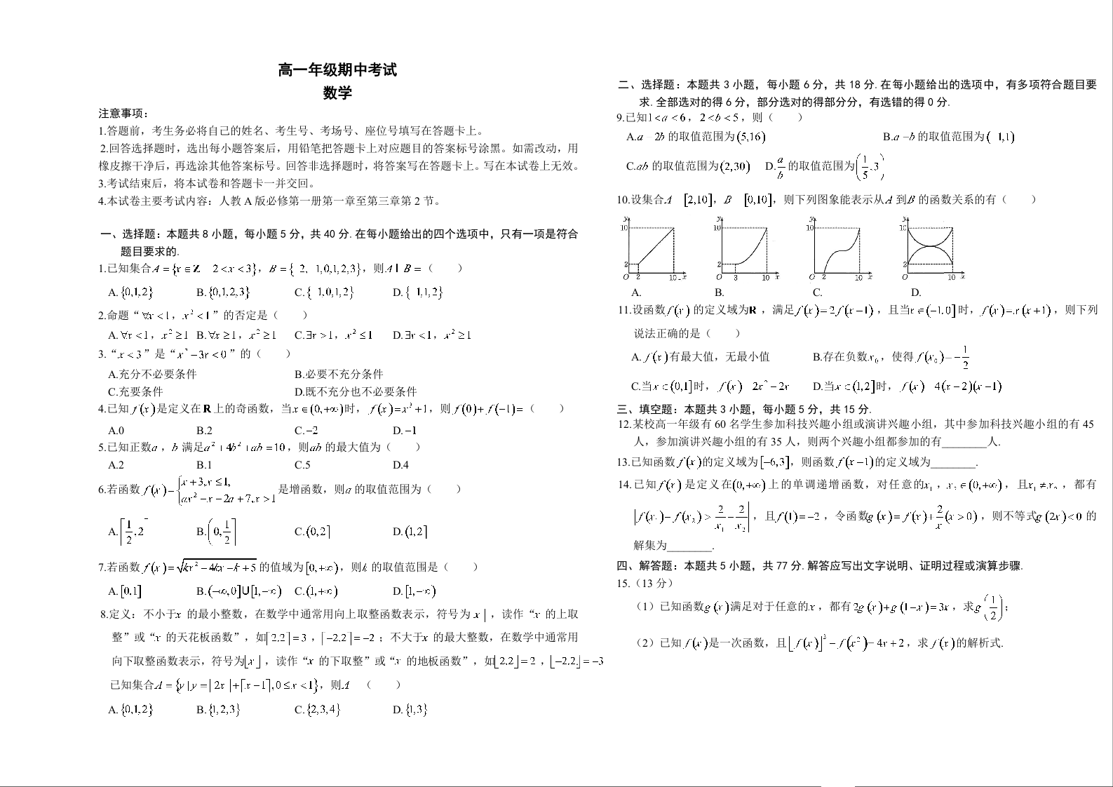 湖南省三新联盟联考2025-2026学年高一上学期11月期中考试 数学试题(含答案).docx