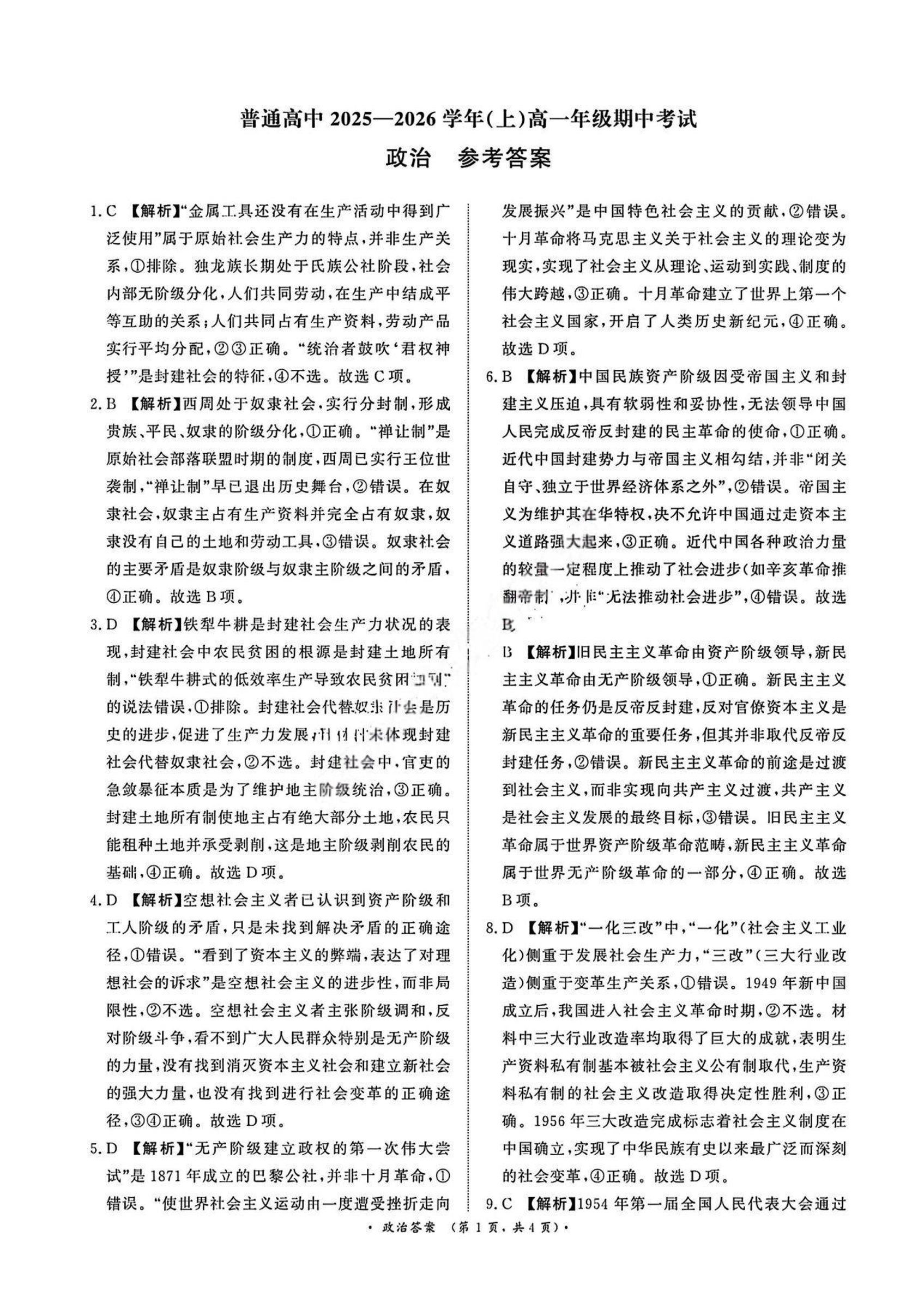 青桐鸣大联考2025-2026学年(上)高一年级期中考试 政治答案.pdf