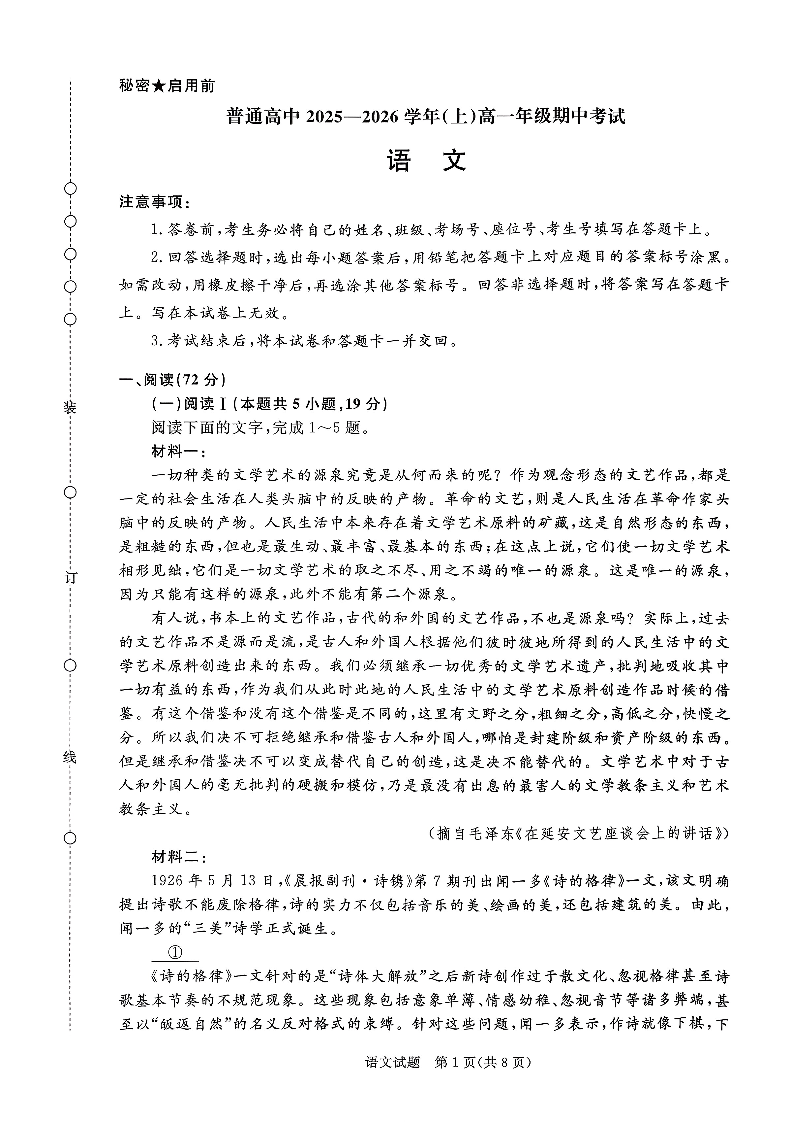 青桐鸣大联考2025-2026学年(上)高一年级期中考试 语文.pdf