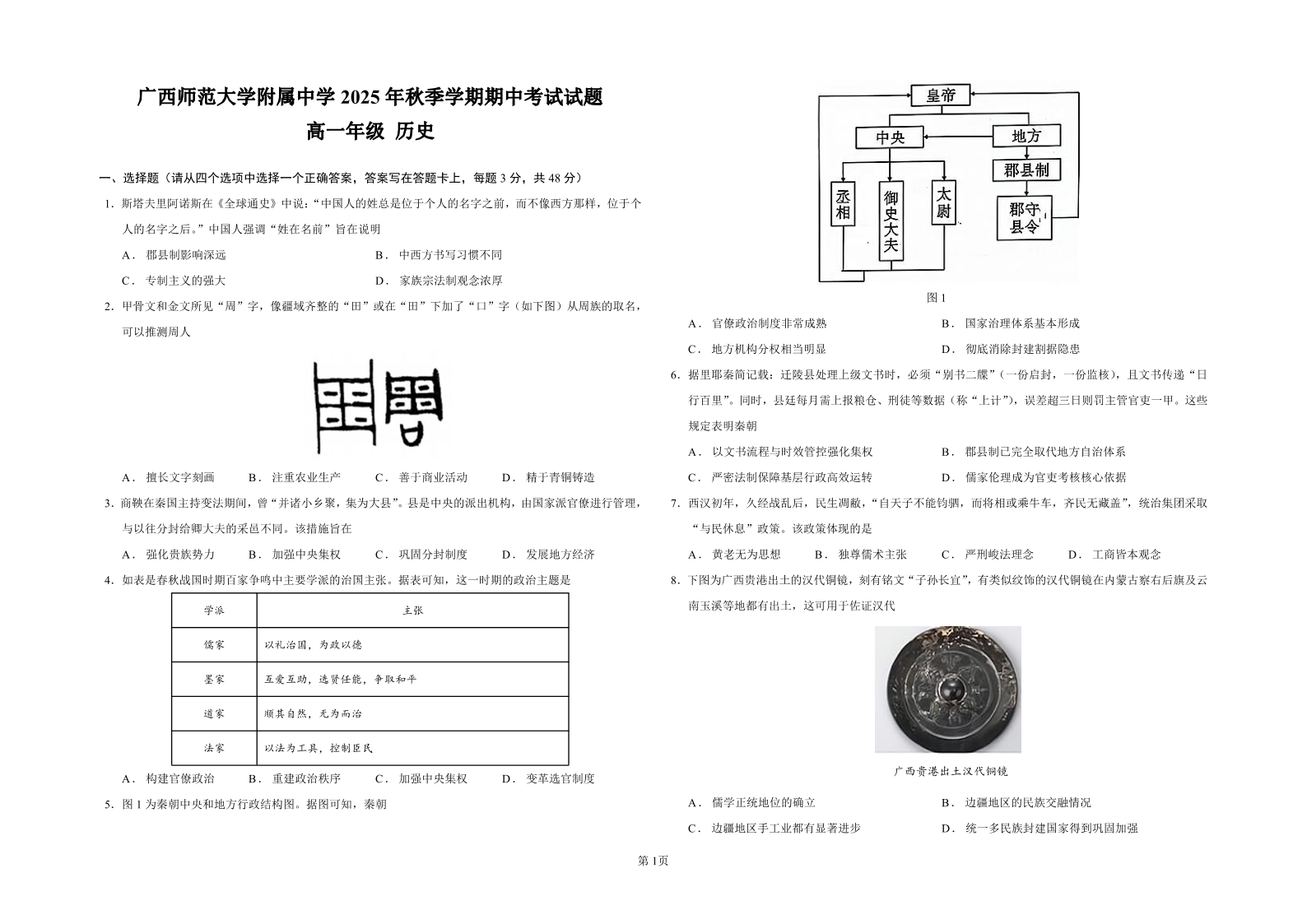 桂林师大附中2025年秋季期中高一历史试卷.pdf