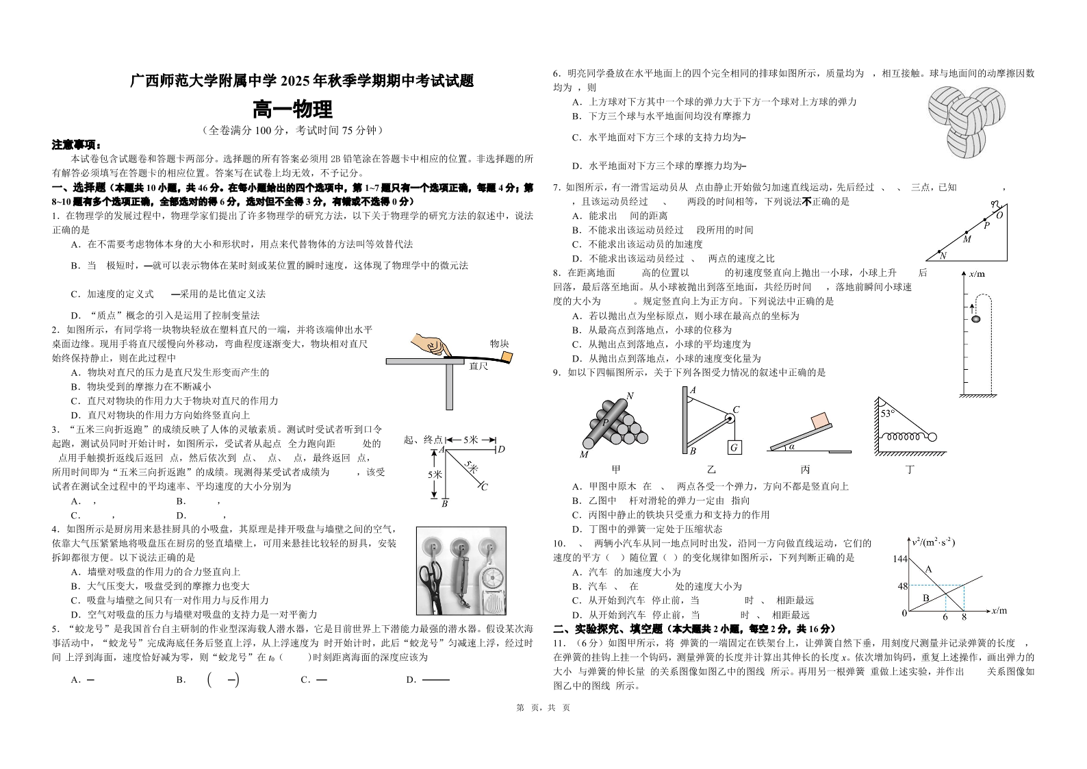 桂林师大附中2025年秋季期中高一物理试卷.pdf