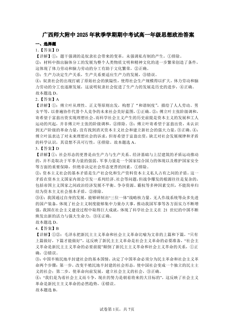 桂林师大附中2025年秋季期中高一政治答案.pdf