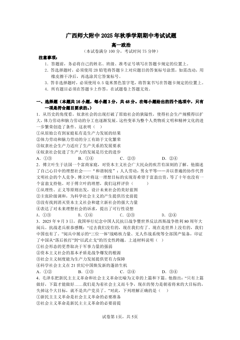 桂林师大附中2025年秋季期中高一政治试卷.pdf