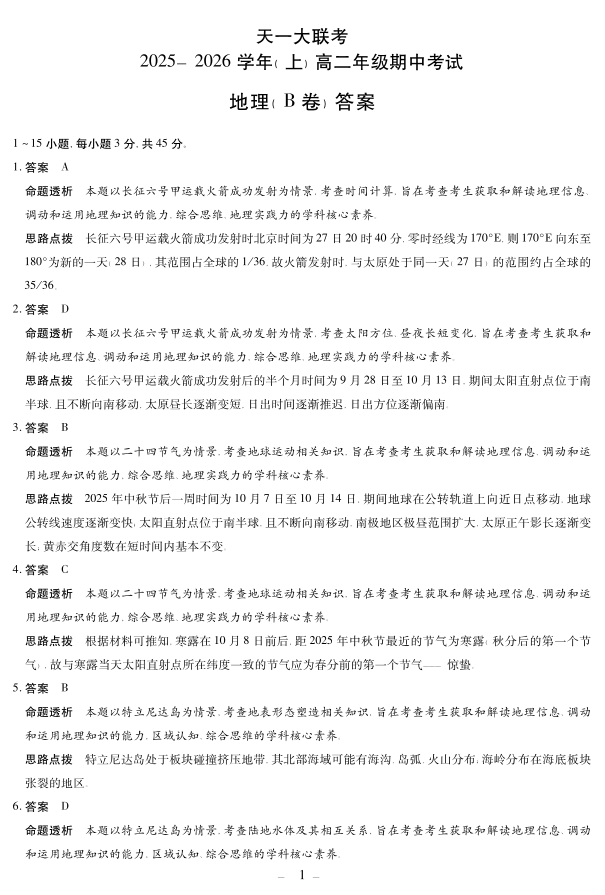 地理B卷山西高二上期中答案.pdf