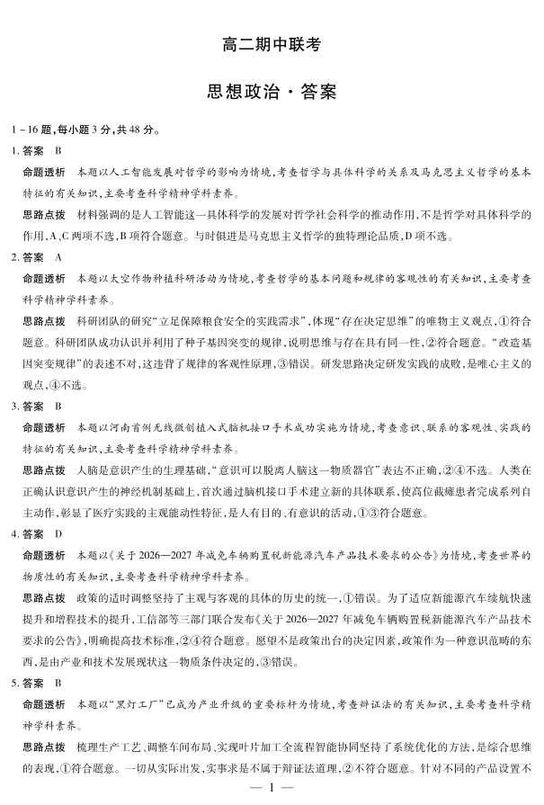 【思想政治答案】天一大联考·安徽省2025-2026学年高二上学期期中联考.pdf