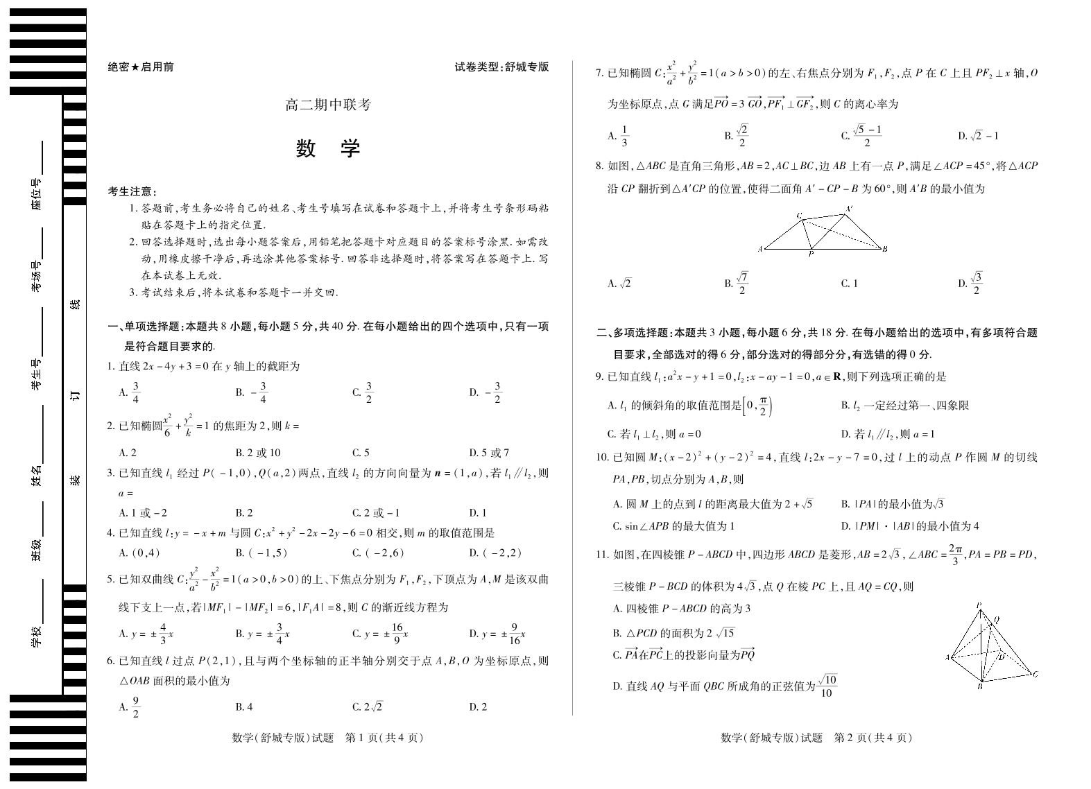 【数学舒城专版】天一大联考·安徽省2025-2026学年高二上学期期中联考.pdf