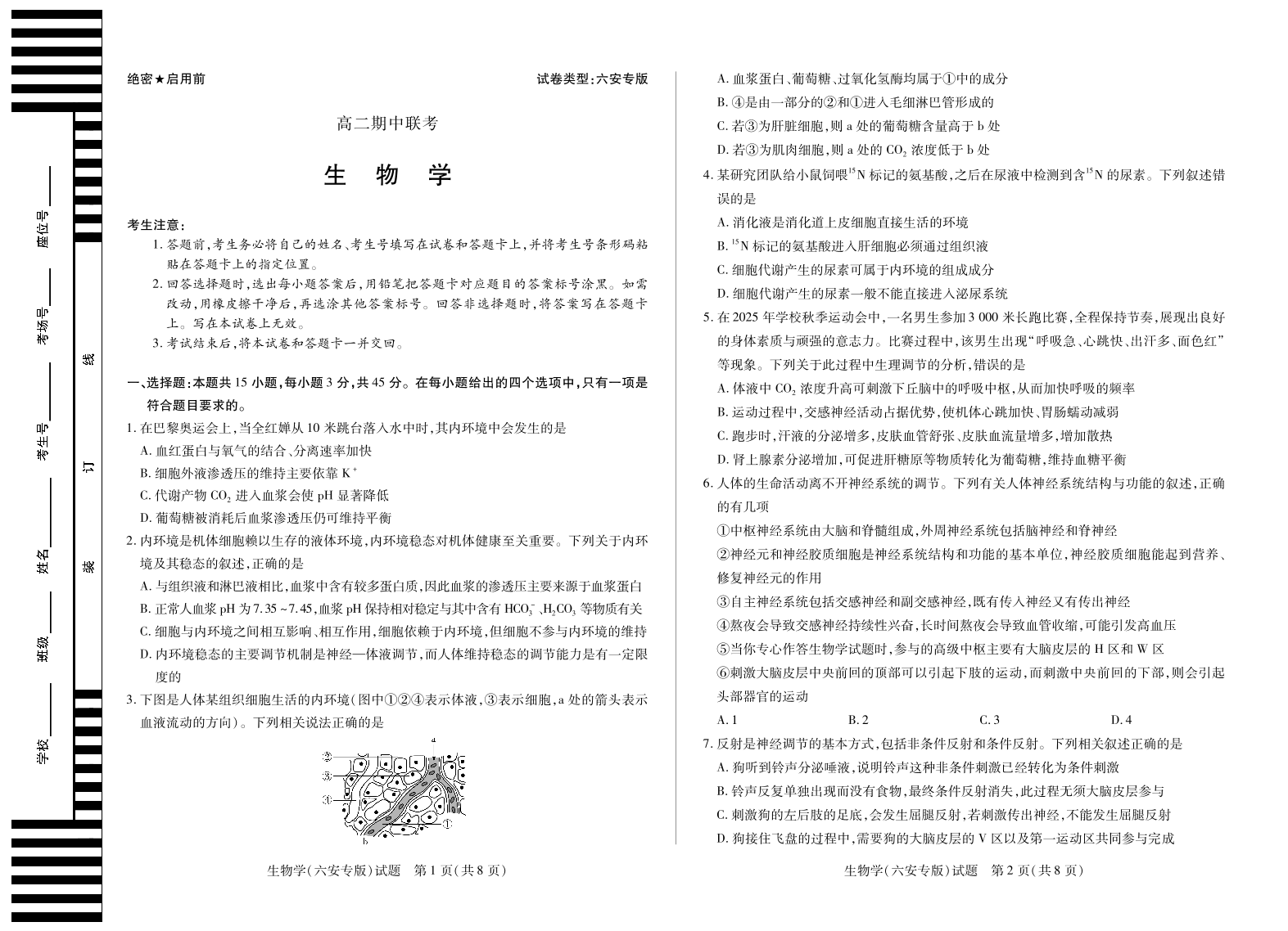 【生物学六安专版】天一大联考·安徽省2025-2026学年高二上学期期中联考.pdf