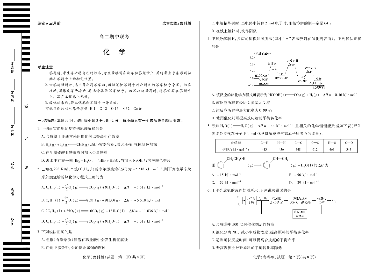 【化学鲁科版】天一大联考·安徽省2025-2026学年高二上学期期中联考.pdf