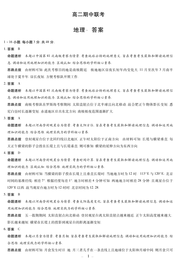 【地理答案】天一大联考·安徽省2025-2026学年高二上学期期中联考.pdf