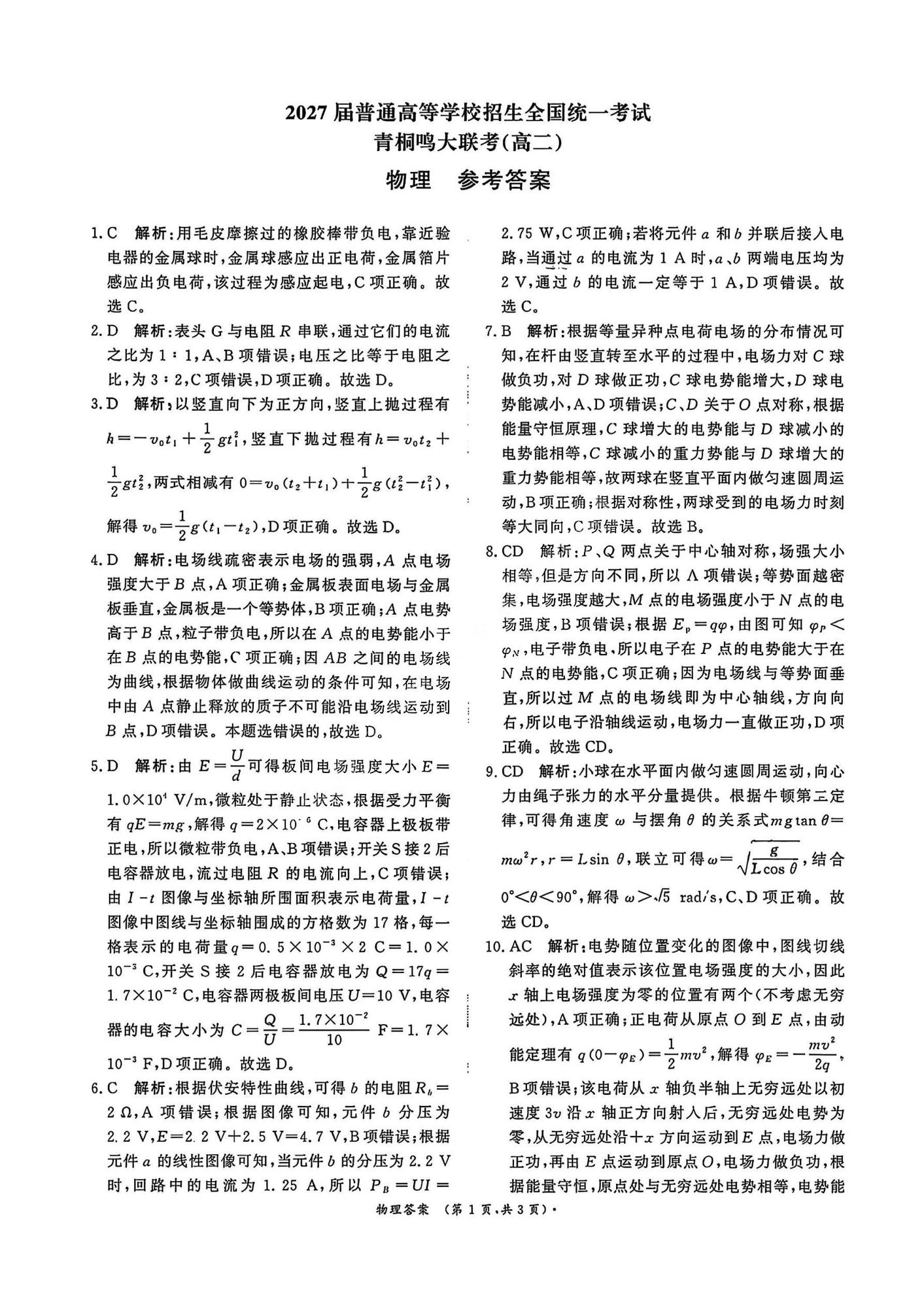 青桐鸣大联考2025-2026学年(上)高二年级期中考试 物理答案.pdf