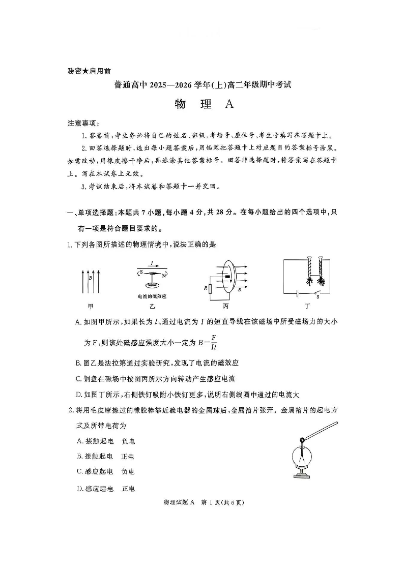 青桐鸣大联考2025-2026学年(上)高二年级期中考试 物理A.pdf