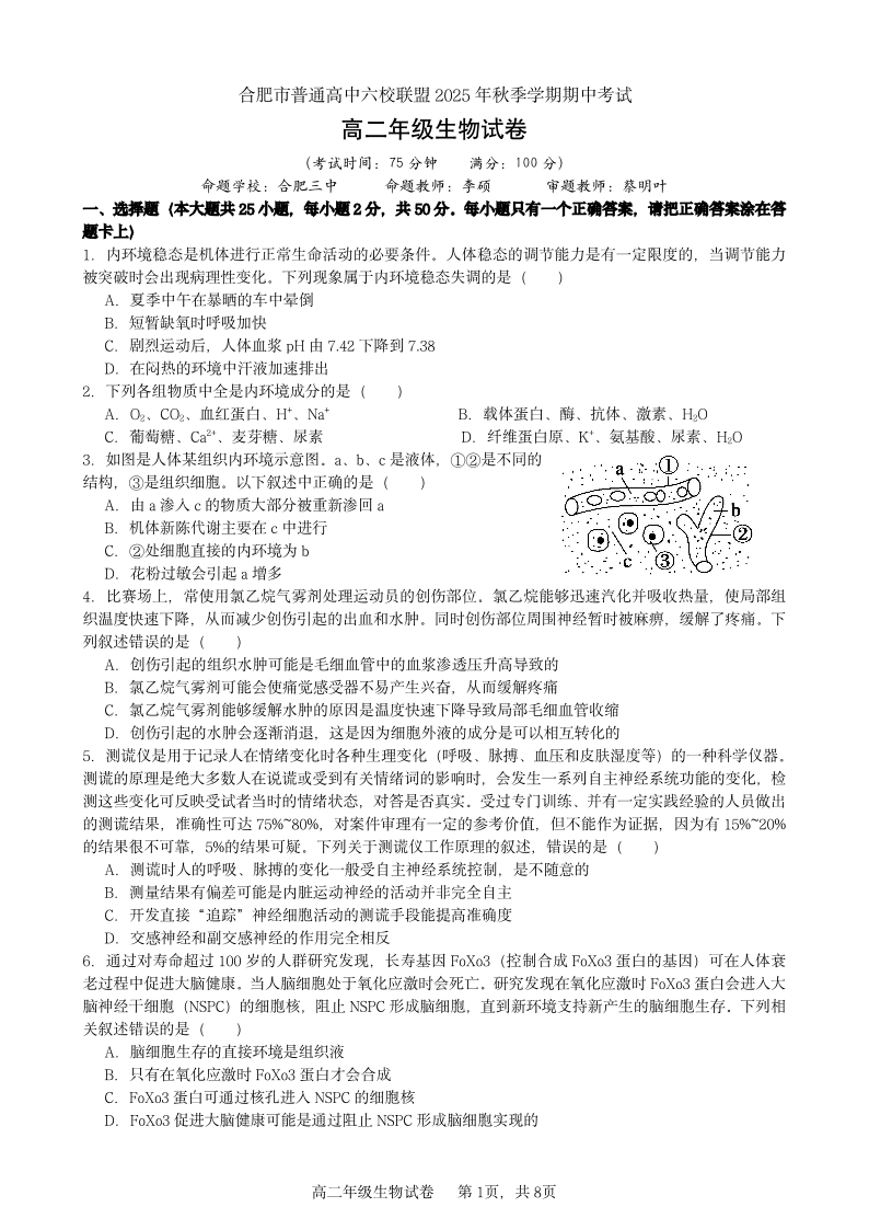 合肥市普通高中六校联盟2025年秋季学期高二年级期中考试 生物.pdf