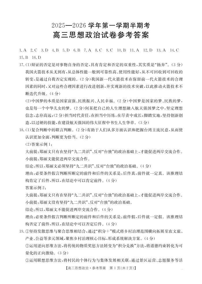 福建省2025-2026学年第一学期半期考 政治答案.pdf