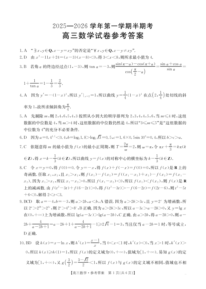 福建省2025-2026学年第一学期半期考 数学答案.pdf