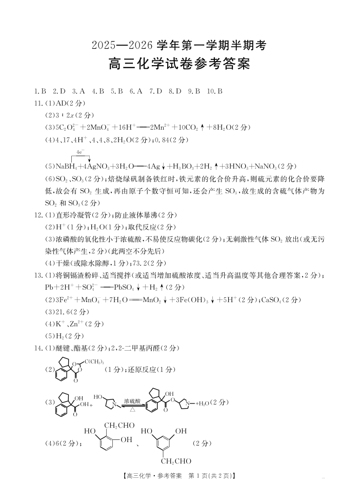 福建省2025-2026学年第一学期半期考 化学答案.pdf