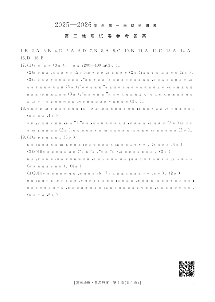 福建省2025-2026学年第一学期半期考 地理答案.pdf