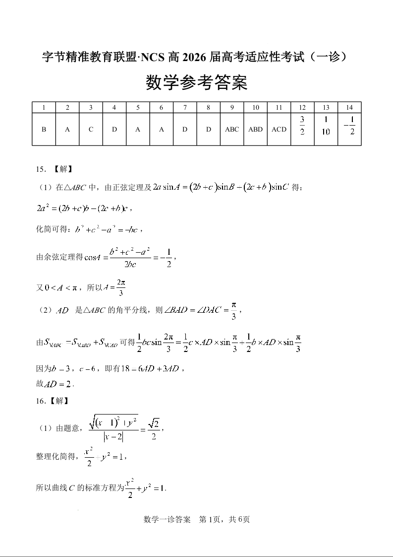 字节精准教育联盟·NCS高2026届高考适应性考试(一诊)数学答案.docx