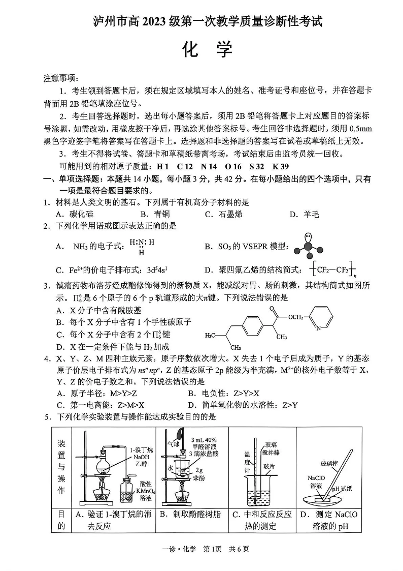泸州市高2023级第一次教学质量诊断性考试 化学.pdf