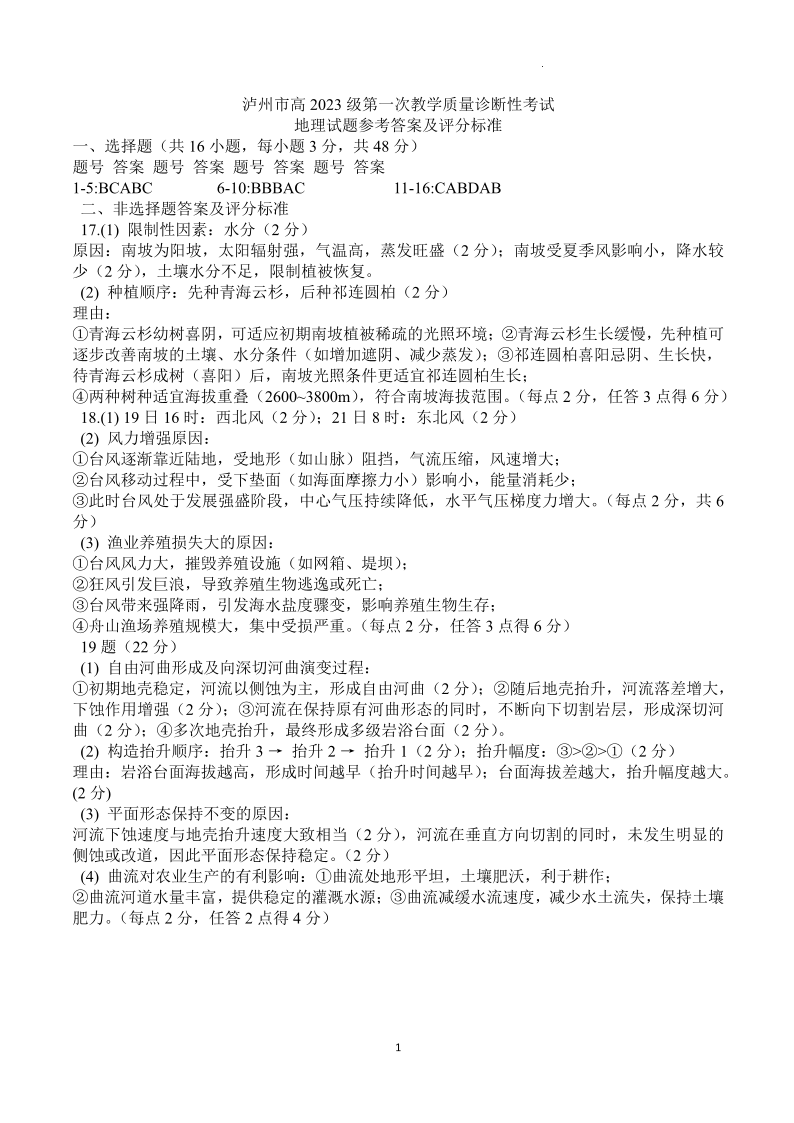 泸州市高2023级第一次教学质量诊断性考试 地理答案.pdf