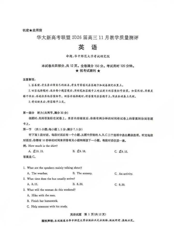 华大新高考联盟2026届高三11月教学质量测评 英语.pdf