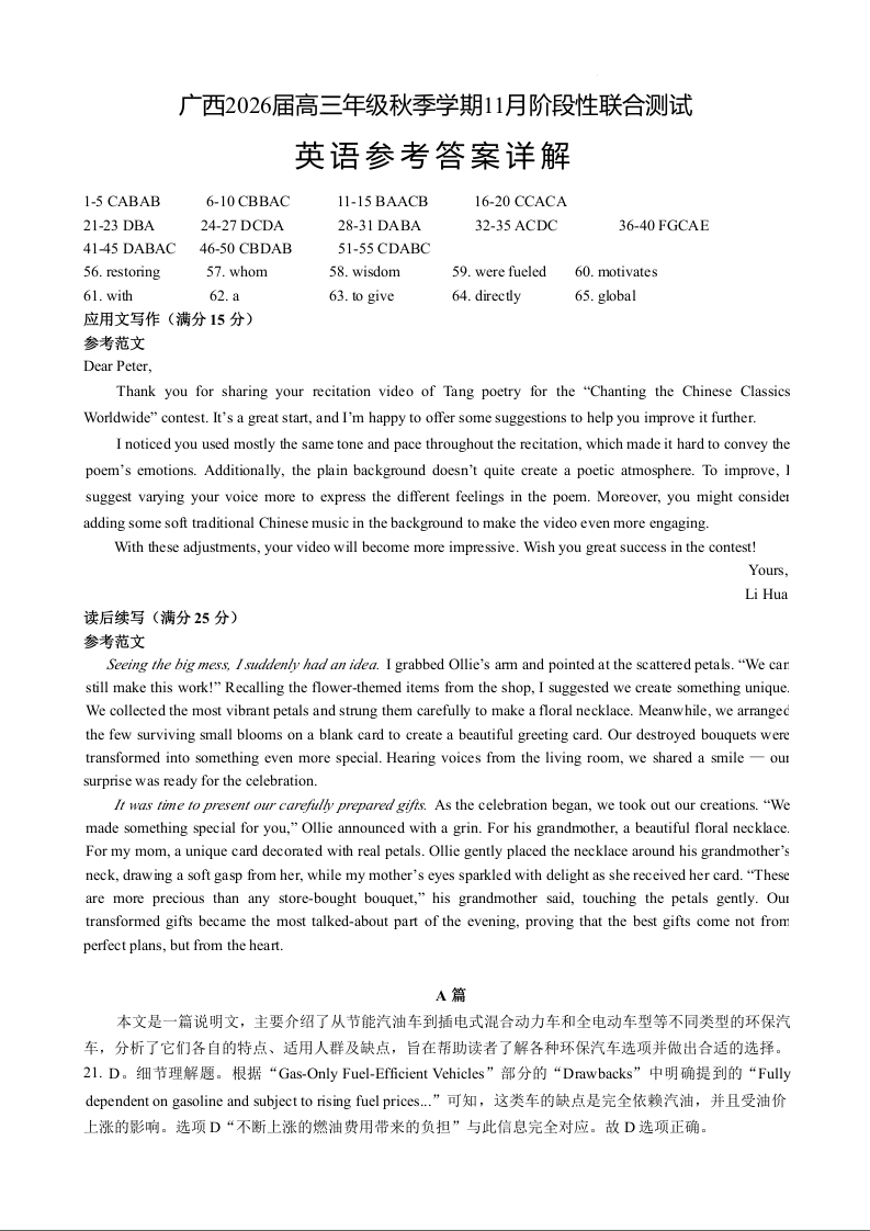 广西2026届高三年级秋季学期11月份阶段性联合测试 英语答案.docx