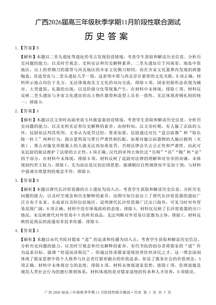 广西2026届高三年级秋季学期11月份阶段性联合测试 历史答案.pdf
