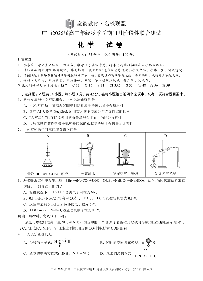 广西2026届高三年级秋季学期11月份阶段性联合测试 化学.pdf