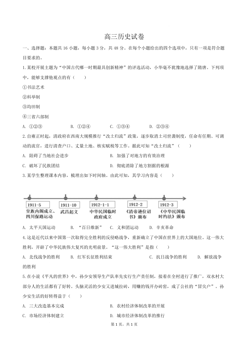 河北省沧州市运东六校2026届高三上学期11月期中考试 历史试题(含答案).docx