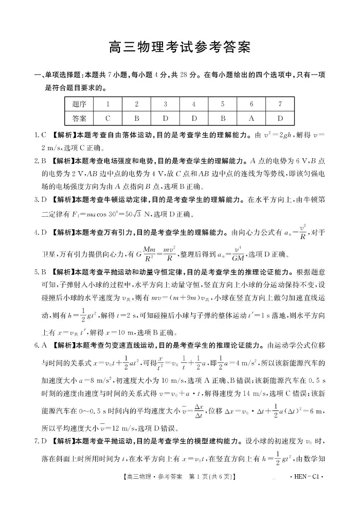 河南省2026届高三上学期11月联考 物理答案.pdf