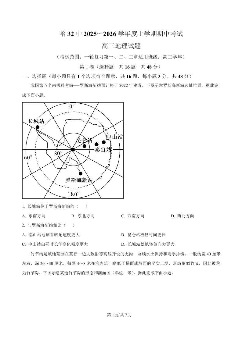 黑龙江省哈尔滨市第三十二中学校2026届高三上学期11月期中考试 地理.docx