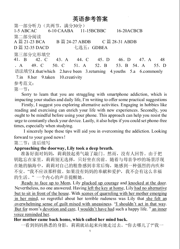 四川省射洪中学2026届高三上学期二模 英语答案.docx