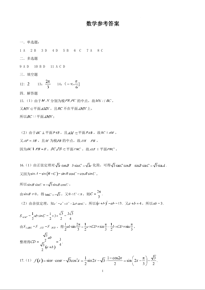四川省射洪中学2026届高三上学期二模 数学答案.docx