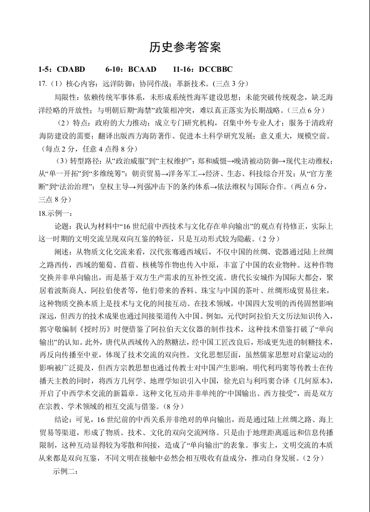 四川省射洪中学2026届高三上学期二模 历史答案.docx