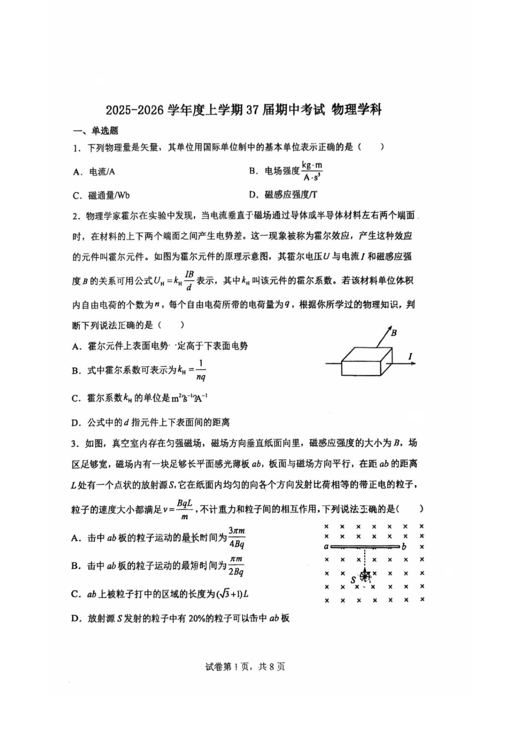 辽宁省沈阳市东北育才高中2025-2026学年上学期高二年级期中考试 物理.pdf