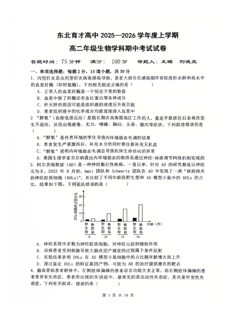 辽宁省沈阳市东北育才高中2025-2026学年上学期高二年级期中考试 生物.pdf