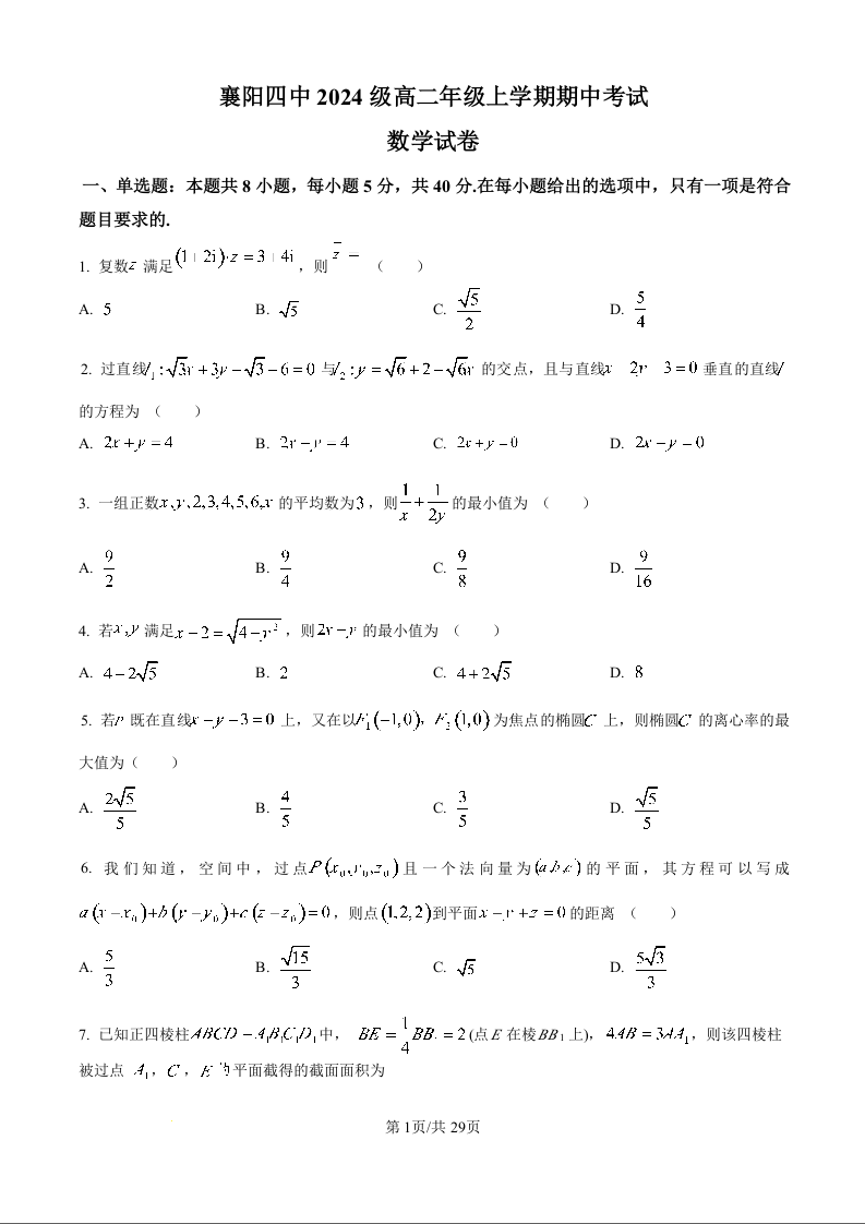 湖北省襄阳市第四中学2025-2026学年高二年级期中考试 数学试题(含答案).docx