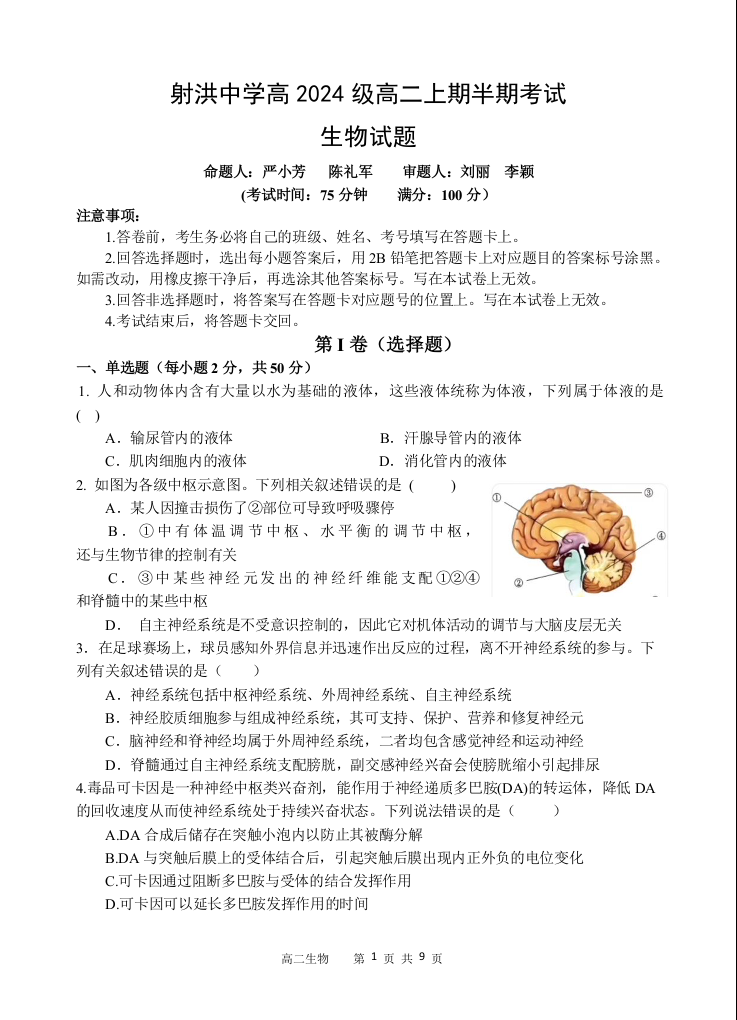 四川省遂宁市射洪中学2025-2026学年高二上学期期中考试 生物.docx