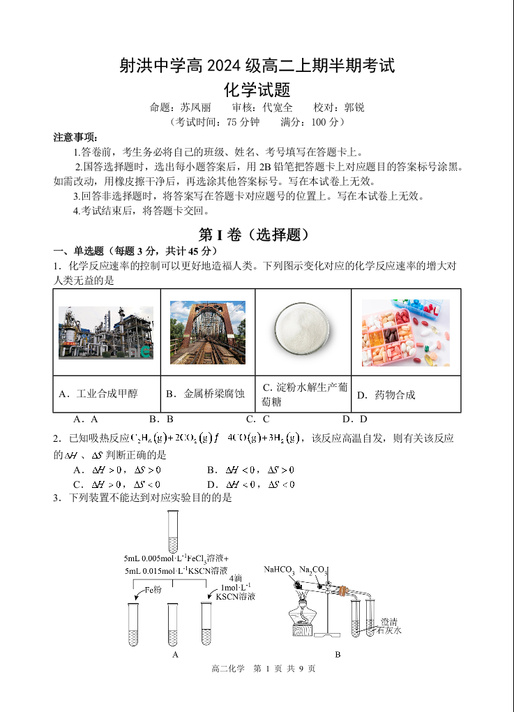 四川省遂宁市射洪中学2025-2026学年高二上学期期中考试 化学.docx
