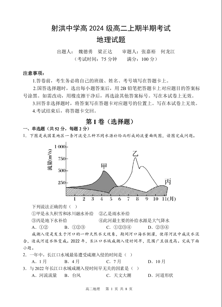 四川省遂宁市射洪中学2025-2026学年高二上学期期中考试 地理.docx