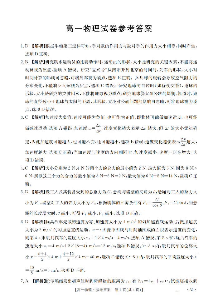 辽宁省2025-2026学年高一上学期11月联考 物理答案.pdf